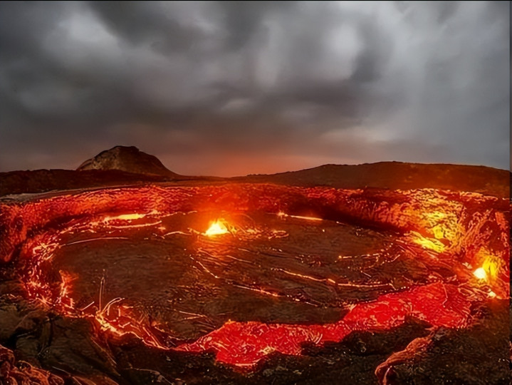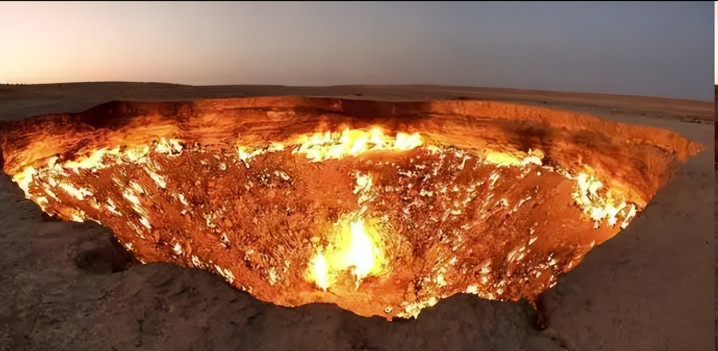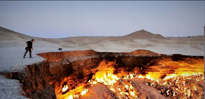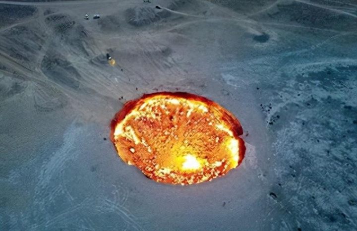 照片中,那燃烧的巨型坑洞在黑暗的沙漠背景下显得格外震撼,迅速吸引了全球目光。